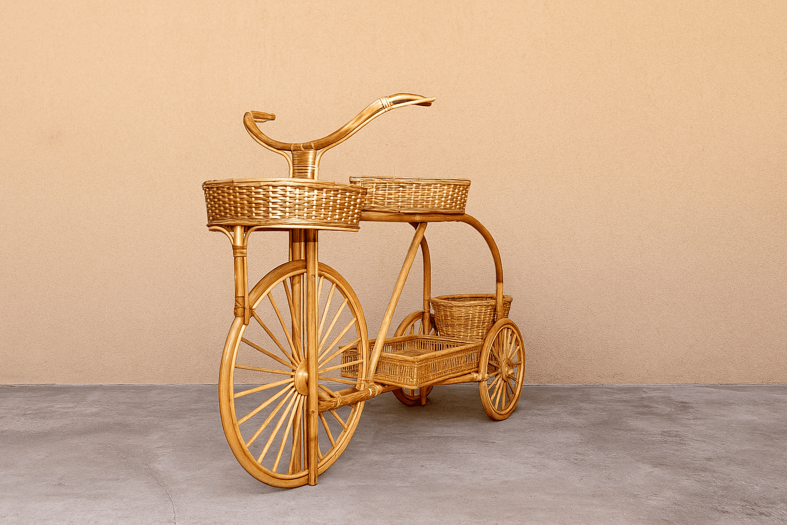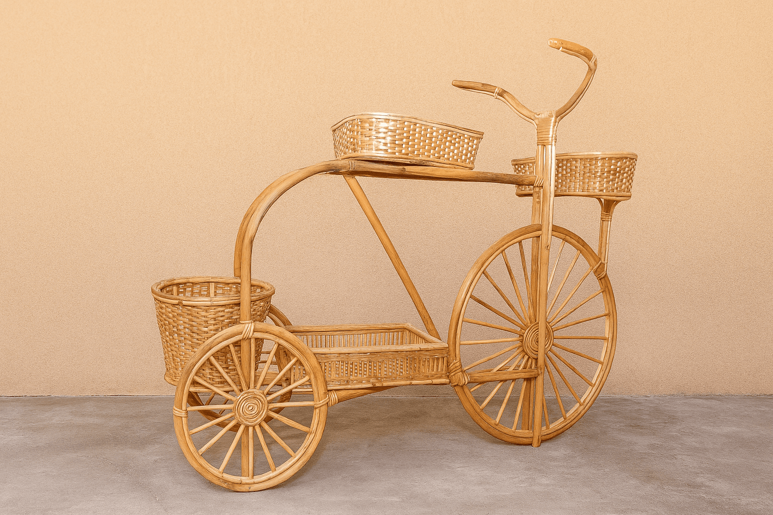 The Cane Decorative Cycle is not just a visually appealing piece; it’s a versatile addition to your home décor. Use it as a charming planter holder to display your favorite indoor plants, or simply as an eye-catching figurine to enhance your tabletop décor. Its eco-friendly materials signify a commitment to sustainable living, making it a responsible choice for conscious consumers. With a minimum order quantity of 50 pieces and a lead time of just three weeks, it’s perfect for retailers looking to add unique items to their collection.